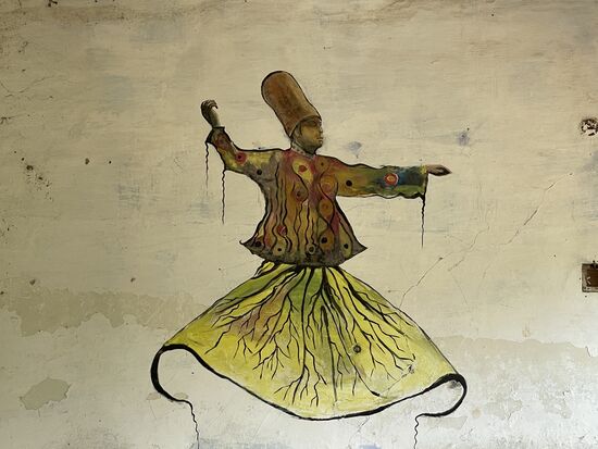 An den Wänden der verschiedenen Gebäude sind Graffitis gemalt. Die meisten sind wohl erst in den letzten Jahren entstanden, jedenfalls erstrahlen sie in leuchtenden Farben.