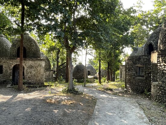 Beim Eingang gibt es kleine runde Häuser, Meditiationshäuser. Diese wurden schon lange vor dem Besuch der Beatles benutzt. Schüler lebten in einfachen Kammern mit einem Bett, Dusche/WC und einem oberen Stockwerk, in das man sich für die Meditation zurück ziehen konnte.