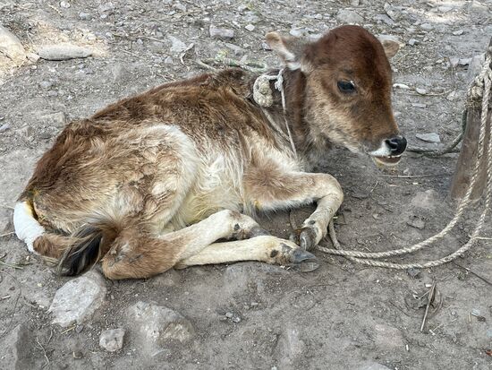 Das winzige Kalb, das wahrscheinlich erst ein paar Stunden auf der Welt zu sein scheint, fotografiere ich dafür ohne Skrupel.