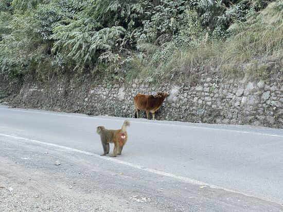 Ein paar Affen leisten uns Gesellschaft, ein paar Rinder und Kühe sind auf ihren Spaziergängen bis hierher gekommen.