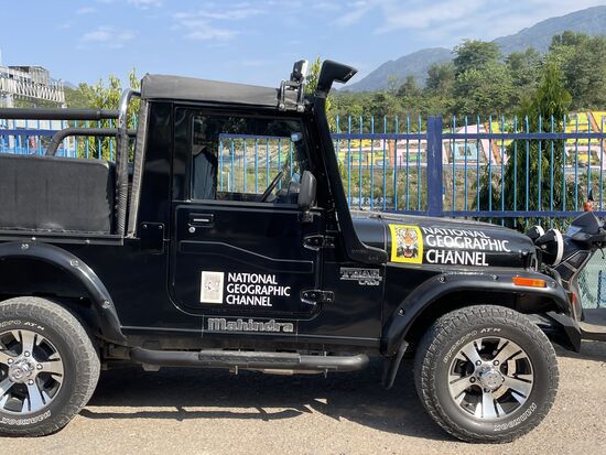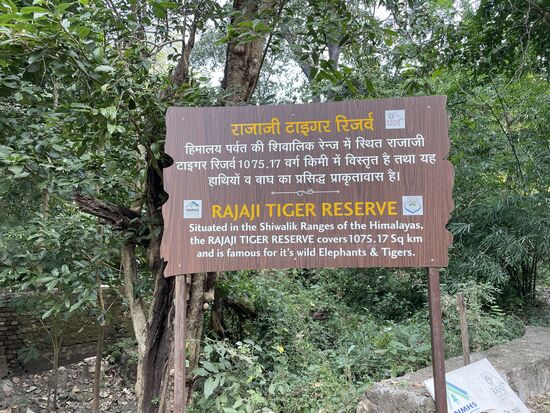 Eine halbe Stunde später fährt ein Toyota-Geländewagen vor. Arjun scheint sympatisch, er versteht, was ich will, weiss wo der Beatles-Ashram ist und nachdem ich mich bei Anil und Seema für die nette Unterhaltung bedankt habe, fahren wir los. Wir fahren durch einen Wald auf der anderen Flussseite. Hier sei eine Zone, in der Tiger und Elefanten leben, in der Dämmerung könne man ihnen manchmal begegnen. Das erklärt auch das Safari-Fahrzeug, das vorhin beim Checkpoint gestanden ist. Es gibt hier Safari-Touren, Wild-life-Beobachtungen.