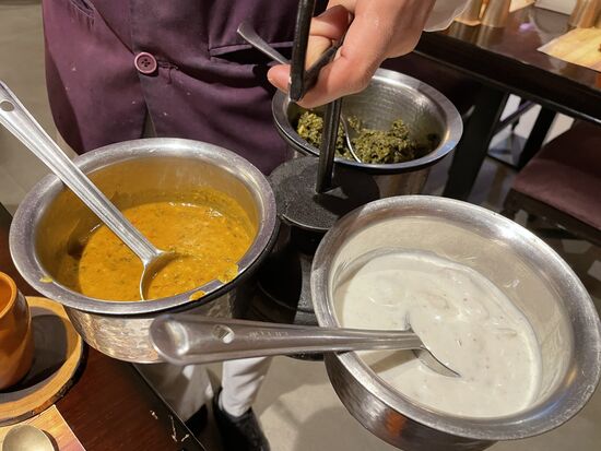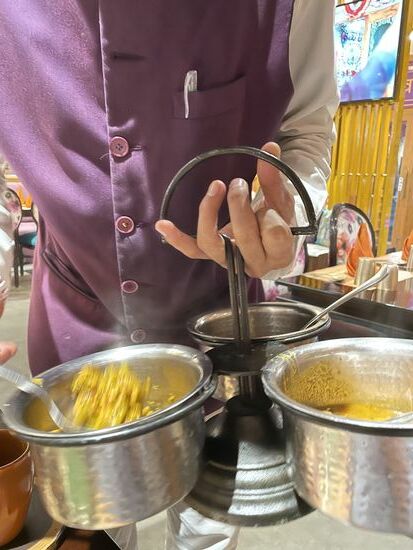 Immerhin, das Menu ist abwechslungsreich, auch wenn es rein vegetarisch ist. Es fängt auch heute wieder mit einer rituellen Handwaschung an und endet mit einem kleinen süssen Dessert.