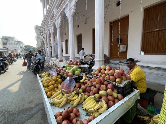 Da passiert nichts, versichert er mir, meine Freunde passen auf. Dabei zeigt er auf die verschiedenen Verkaufsstände mit Früchten, Gemüse oder mit Chai. Hier wird nichts geklaut, wir sind in der heiligen Stadt.