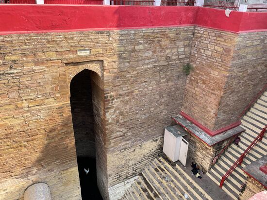 Durch ein paar schmale Gassen kommen wir zu einem Tempel mit einer Quelle, die tief unter dem Strassenniveau liegt. Hierher kommen Ehepaare, die keine Kinder bekommen können. Sie kommen, um zu beten und sich zu reinigen, oder um in das Wasser einzutauchen. Wenn sie dann später Kinder bekommen haben, kommen sie zurück, um sich zu bedanken. Gerade ist eine Gruppe da mit einem Trommler. Seine Klänge hallen durch die Gasse. Dank für das Bebe, das in den Armen der Mutter liegt.