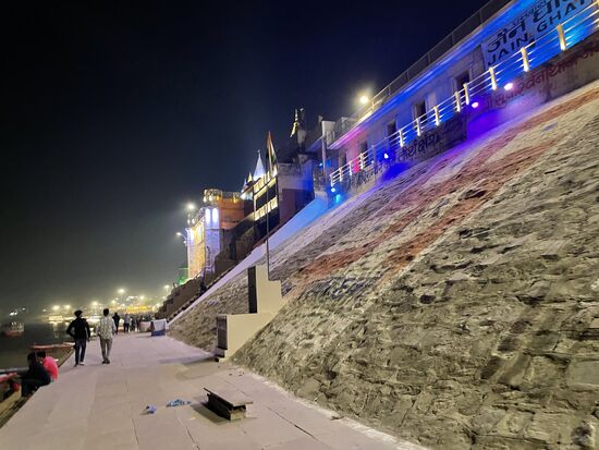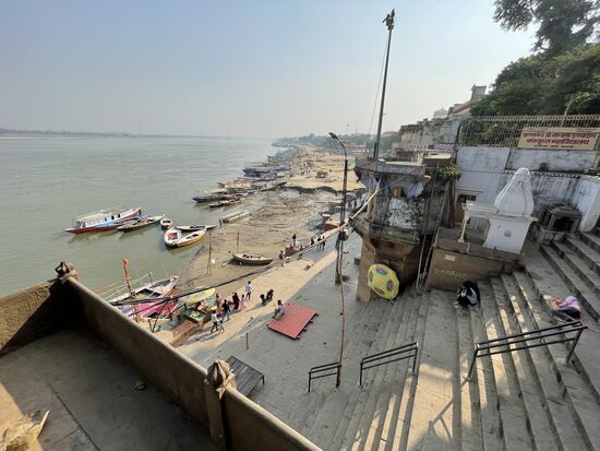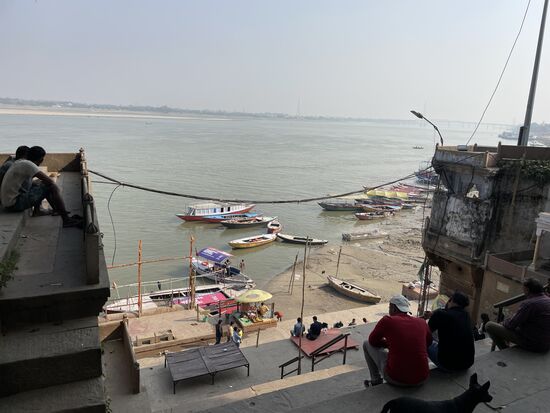 Varanasi ist eine Millionenstadt und sie liegt wie Rishikesh am Ganges. Doch was für ein Unterschied. Wo in Rishikesh ein beschaulicher Spazierweg am Wasser lag, sind es hier die Ghats. Lange Treppen, die hinunter ans Wasser führen.