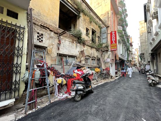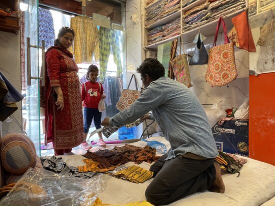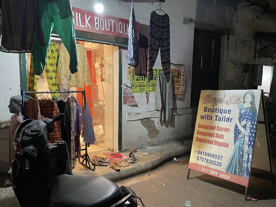Und dein Laden? frage ich, als wir uns von dem offenen Laden mit all den Saris und Kleidern entfernen.