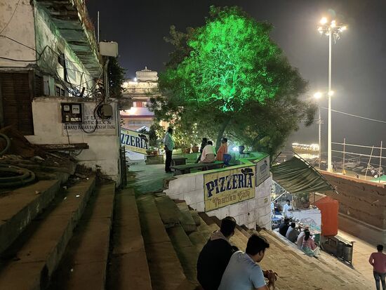 Da kam mir die Gemüselasagne in der Pizzeria am Ghat ganz in der Nähe des Hotels gerade recht. Und der Apfelkuchen mit der Eiscreme, den mir der Kellner empfahl, war einfach wunderbar.