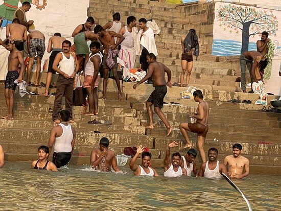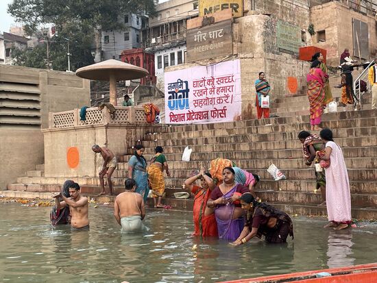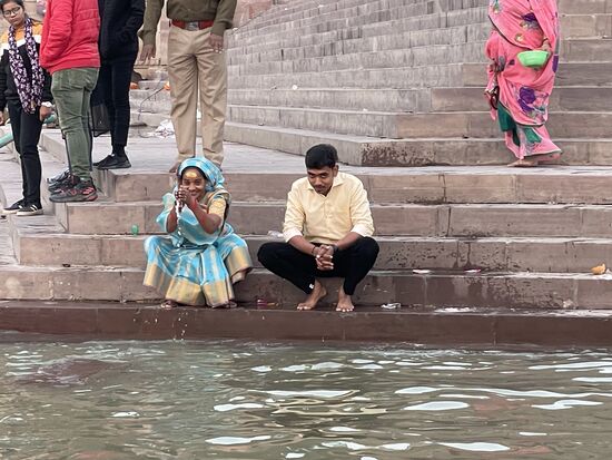 Zwar ist die Verehrung des heiligen Wassers ein wesentlicher Teil des religösen Lebens, aber das hindert die Inder nicht, freundlich zu bleiben und auch neugierig. Hier ist sie wieder, diese uneingeschränkte Verehrung, dieses tägliche Ritual. Viele Einwohner kommen jeden Morgen hierher.