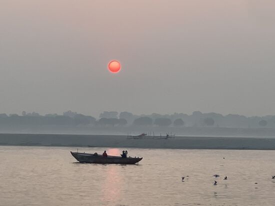 Am Ufer sind jetzt immer mehr Menschen zu sehen. Es scheint, als ob die ganze Stadt herkomme um die Sonne zu begrüssen, den Ganges zu verehren.