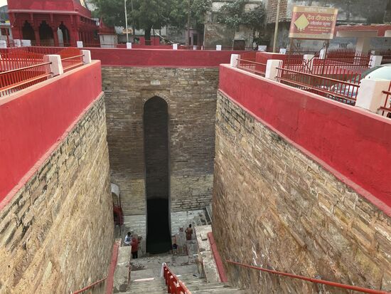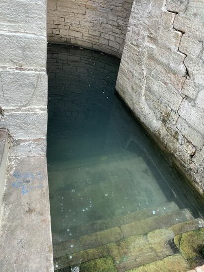 Doch gegenüber Sadhav gestern hat sie einen grossen Vorteil. Sie kennt die Leute, die hier arbeiten. Sie bittet den Wärter, das Tor zu öffnen, so dass wir hinunter steigen können. Ganz hinunter bis zum Wasser. Die Schuhe haben wir sowieso oben gelassen also können wir jetzt auch kurz die Füsse ins Wasser stellen. Dabei wird klar, dass es sich um eine Thermalquelle handelt. Jedenfalls ist das Wasser leicht warm und die Konstruktion sehr eindrücklich. Es ist einer der ältesten Tempel der Stadt.