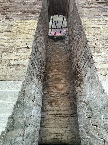 Wir legen am Ufer an und steigen die Treppe hinauf. Kommen an grossen Graffitis vorbei. Einige sind bereits verblasst, andere erst vor kurzem entstanden.