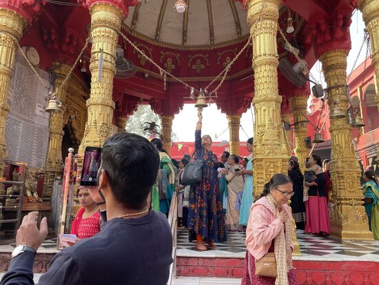 In der MItte des Tempelkomplexes befindet sich der Haupttempel. Ein Altar unter dem höchsten Aufbau und eine offene Halle mit goldenen Säulen und kleinen Glocken dazwischen. Hier wie auch an vielen anderen Gebetsstellen, läuten die Menschen kurz mit der Glocke, bevor sie wieder gehen. Oder wenn sie kommen, nachdem sie kurz den Boden mit ihren Händen berührt haben. Ehrfürchtig.