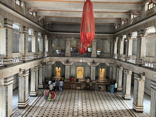 Der nächste Tempel ist schon vom Gebäude her etwas ganz Besonderes. Es ist ein Marmorbau, eine grosse Halle, innen und aussen in Marmor ausgekleidet. Gebaut wurde der Tempel vor 60 Jahren. Er ist einem wichtigen Dichter und Mystiker gewidmet, der im 16. Jahrhundert gelebt hat.