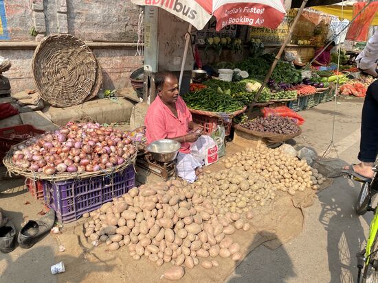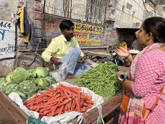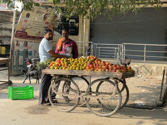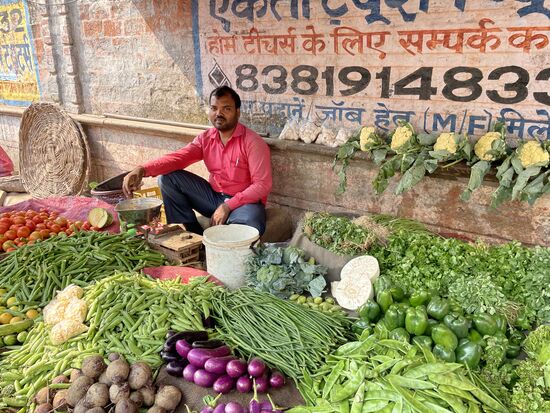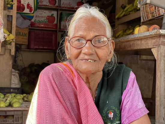 Wir verlasssen den Tempel, kommen zu einem kleinen Gemüse- und Früchtemarkt, wo ich versuche, mit den Leuten in Kontakt zu kommen, um vielleicht das eine oder andere Foto zu machen. Die Leute sind freundlich, lassen mich gewähren, wackeln mit dem Kopf, wenn ich sie frage, ob ich ein Bild machen dürfe.
