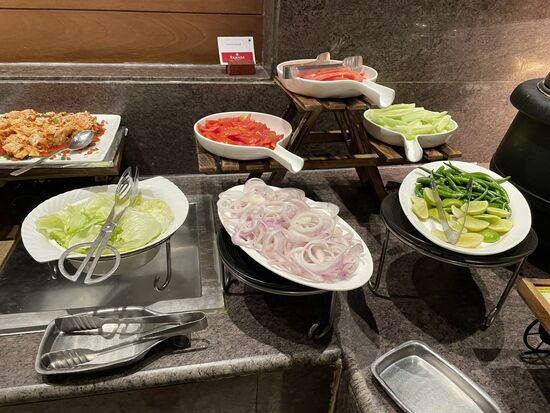 Nachdem ich das schöne Buffet im Ramada-Restaurant gesehen habe, entscheide ich mich gegen die a-la-carte-Karte und muss kurz darauf über mich selber lachen.