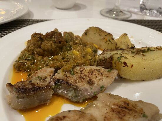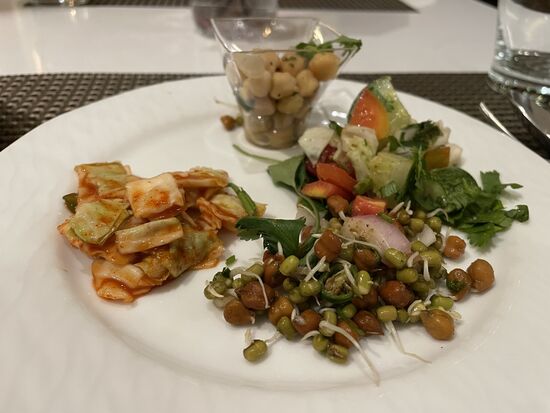 Natürlich sind auf dem Buffet neben all den feinen frischen Vorspeisen vor allem indische Gerichte. Verschiedener Reis, vegetarische Currys, aber auch Kartoffeln und Chicken-Stücke. In einer sehr würzigen Sosse gibt es ein dunkles Fleisch, von dem ich ebenfalls probiere. Es schmeckt wunderbar, aber leider hat es ein paar Knochensplitter im Fleisch, so dass ich das Gefühl habe, das Tier sei mit der Axt erschlagen worden. Goat sei es, meint der Kellner. Ziege also. Angeschrieben war es mit Mutton, was eigentlich Hammelfleisch heisst. Das findet man manchmal in Restaurants, die nicht ausschliesslich vegetarische Küche anbieten.