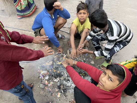 Ich merke schon, wie Dipa mich immer wieder erstaunt anschaut. Ich könne ohne weiteres fotografieren, brauche nicht zu fragen. Doch ich bleibe dabei, die Bilder werden viel besser, wenn mir die Leute direkt in die Kamera schauen, als wenn ich sie irgendwie überrumple. Auch die kleinen Jungen wollen mit mir Kontakt aufnehmen, ziehen mich am Kleid, wollen wissen, woher ich bin. Sie hocken um ein kleines Feuer und wenn es kalt wäre, würde ich behaupten, sie würden sich die Hände wärmen. Aber es ist warm. NIcht heiss. Vielleicht ist das für die Kinder bereits kalt genug, um sich irgendwo etwas Wärme zu holen.