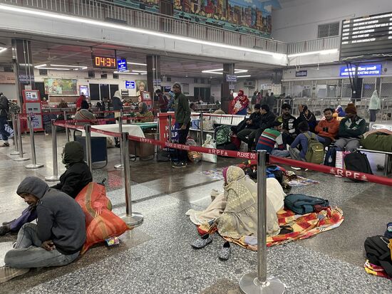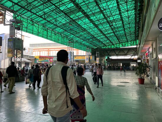 Kurz vor vier Uhr sind wir bei der Station. Diese ist hell beleuchtet und voller Menschen, die auf einen Zug warten. Die Anzeigetafel zeigt die richtige Zeit und die Plattform. Aber die App, die Rajeev auf seinem Handy abfragt, weiss, dass der Zug Verspätung hat. Mindestens eine Stunde.