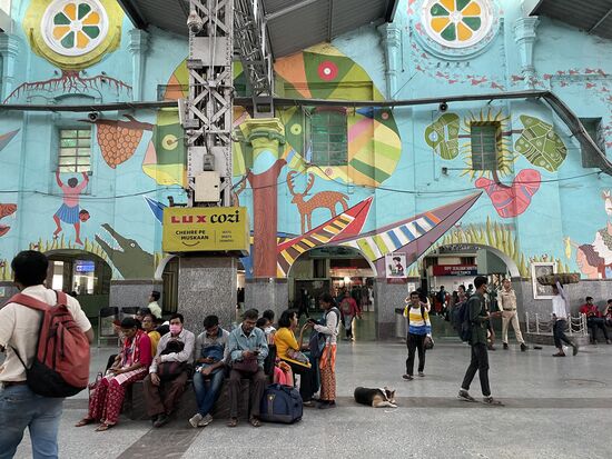 Mit zwei Stunden Verspätung kommt der Zug in Kolkata an. Kolkata, früher hiess es Kalkutta. Wir fahren in einen Sackbahnhof. Endstation. Natürlich stürmen auch hier wieder die Kofferträger den Zug, doch diesmal bin ich gewappnet, Stehe schon bei der Türe, bevor der Zug ganz hält - zu diesem Zeitpunkt kommen tatsächlich die Kofferträger bereits in den Zug. Darum stehen sie dann auch bei Stillstand sofort in der Kabine.