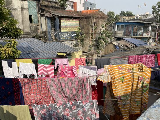 Überraschung am Morgen. In der Fensternische neben meinem Schreibplatz liegen zwei Eier in enem spartanischen Nest. Kurz darauf sitzt auch tatsächlich eine Taube da und lässt sich von mir nicht stören. Schade, dass ich nicht dabei sein werde, wenn die Jungen schlüpfen. Die Brutzeit dauert 15-18 Tage, so lange will ich nicht hier bleiben, auch wenn ich im Moment noch nicht so genau weiss, wo und wann es weiter geht und ich darum meinen Aufenthalt um ein paar Tage verlängert habe. Mir tut das Zimmer gut. Es könnte irgendwo auf der Welt sein, von Kolkata spüre ich höchstens die Trommelklänge am Morgen und am Abend, die irgendwo bei einem Tempel geschlagen werden, die Tuctucs, die unten vorbei fahren, gelegentliches Hupen, von der Strasse, die Baustelle tief unter meinem Zimmer, wo weiterhin von Hand gearbeitet wird.