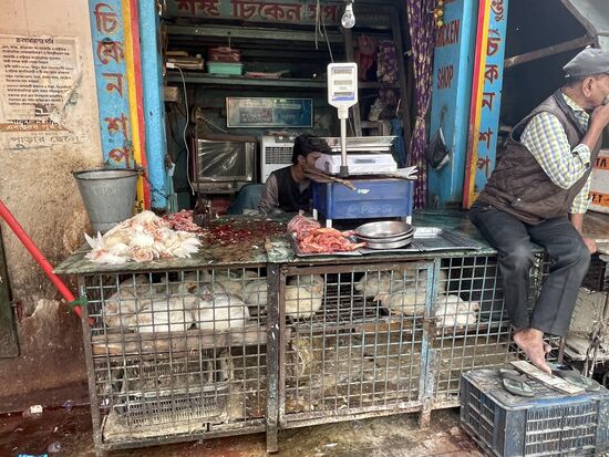 Nebst Fischen gibt es aber auch Hühner zu kaufen. Sie werden in kleinen Verschlägen gehalten und hier an Ort und Stelle geschlachtet und ausgenommen.
