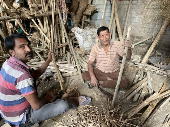 Also suche ich jetzt Läden mit Keramikartikeln und finde keine. Nur diese riesigen Strohpuppen, die plötzlich überall auftauchen. Auf der Strasse, vor Werkstätten, in Scheunen. Manchmal sitzen da Männer, schnitzen an Bambusrohren. Ja ich darf hinein kommen, man winkt mir, ich soll fotografieren. Aber reden, nein reden können wir nicht.
