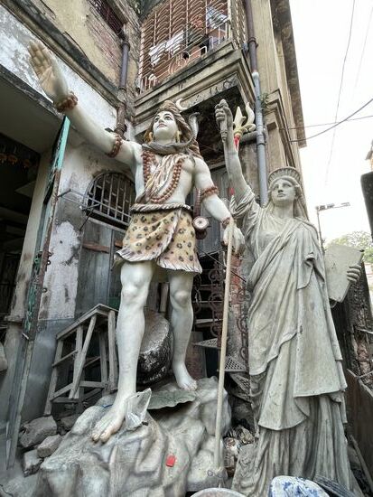 Immer mehr dieser grossen Figuren entdecke ich, aber sie beschränken sich nicht auf Kali, es gibt ganz viel verschiedene Themen. Helden, Götter, auch Staatsmänner sind darunter. Ich kann die Freiheitsstatue entdecken und sogar eine Marienstatue mit Kind.