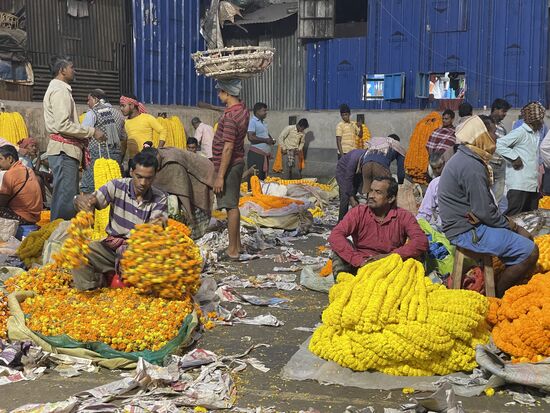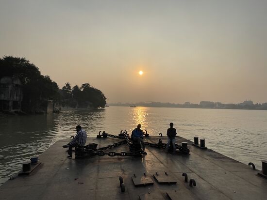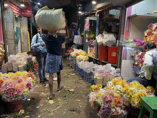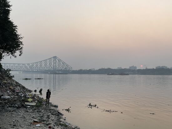 Die vielen Blumenstände die jetzt immer mehr auftauchen, weisen auf die Nähe des Blumenmarktes hin. Bereits kann ich die Howrah-Brücke sehen, der Markt weitet sich bis hierher aus. Ich gehe durch ein Tor, will noch einmal hinunter zum Fluss, als ich abrupt stehen bleibe.