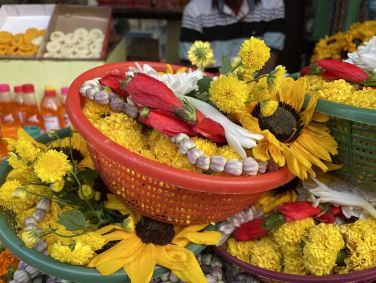 Während die eine Seite relativ sauber ist und auch immer wieder von Arbeitern gewischt wir, sammeln sich auf der anderen Seite Berge von Abfall. Natürlich wird der Ort auch als Pissoir und versteckte Toiletten benutzt. Und trotzdem werden da unten auf der einen Seite Früchte und Gemüse, Gewürze und Getreide verkauft. Und Blumen natürlich.