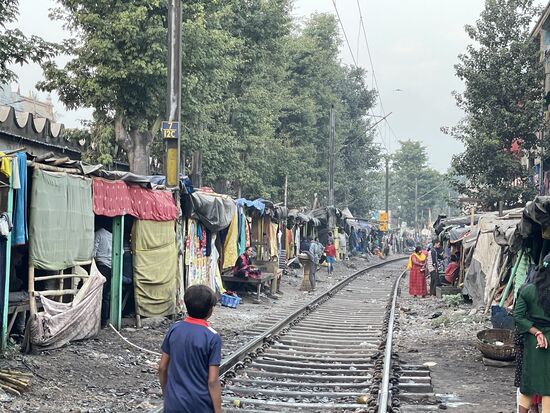 Beim Weitergehen komme ich auf der anderen Seite der Geleise jetzt tatsächlich zu Slums. Zu unglaublich schlimmen Hütten. So wie sie dastehen, scheinen sie schon ewig da zu sein. Zusammengehalten mit Plachen, Brettern, Abfällen. Ohne Fenster, mit Löchern und winzigen Türen. Was ist das für ein Leben, was für eine Perspektive, wenn man an einem solchen Ort aufwächst. Ob man da in die Schule geschickt wird? NIcht vorstellbar.