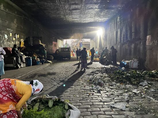 Jetzt ist es nicht mehr weit bis zum Blumenmarkt. Nur noch unter dem langen dunklen Tunnel durch, der unter der Brücke mit der doppelspurigen Strasse führt.