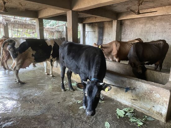 Ja, in Indien sind die Kühe heilig und werden nicht geschlachtet, aber wie man sie anständig hält, scheint nicht zu interessieren. Entweder lässt man sie irgendwo frei laufen, oder man sperrt sie ein. Vielleicht werden diese Tiere sogar geschlachtet, ich habe leider vergessen, nachzufragen, aber in Assam ist die Bevölkerung halb Hindi, halb Moslem. Muslime essen Fleisch, auch Rindfleisch.