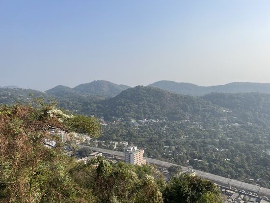 Wir halten noch kurz an einem Aussichtspunkt an, denn der Tempel liegt auf einem Hügel und wenn die Stadt nicht von einem leichten Dunst bedeckt wäre, hätte man von hier eine gute Aussicht in die Berge und hinunter zum Fluss und die Stadt.