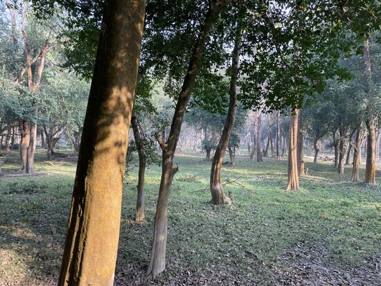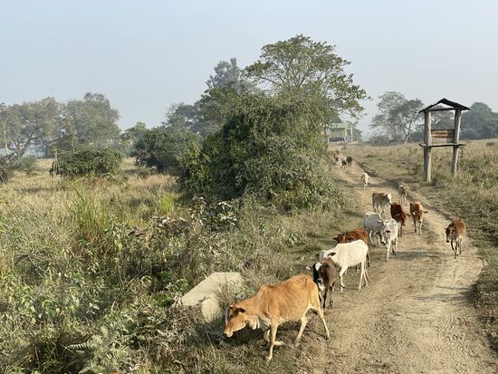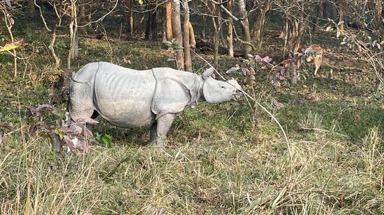 Es ist kurz nach Sonnenaufgang, als Rahul mich am Morgen abholt. Er hat sich etwas verspätet, denn auch er, genau wie ich steht morgens nicht gern früh auf. Das haben wir gestern bereits herausgefunden. Doch wir sind früh genug. Es sind nur knapp 50 Kilometer bis zum Pobitora Wildlife Sanctuary, wo ich für heute Morgen eine Safaritour gebucht habe. Es war ziemlich aufwändig, bis ich das Ticket endlich hatte. Schon vor zwei Tagen haben wir davon gesprochen, aber ich konnte per Internet niemanden erreichen. Auf meine Chatanfragen gab es keine Antworten. Dann hat gestern morgen Ramesch versucht anzurufen und konnte sogar mit jemandem sprechen, aber auch da kam keine Antwort mehr. Es brauchte wieder Rahul und eine Adresse, die ihm von einem Freund übermittelt wurde, bis ich gestern Abend endlich mein Ticket für die Safari buchen konnte. Ohne Ticket fahre ich nicht so früh los, wenn ich nie weiss, ob das klappen wird, hatte ich ihm erklärt. Aber irgendwie geht am Schluss alles. Jedenfalls sind wir jetzt unterwegs.