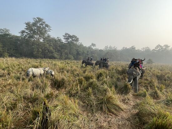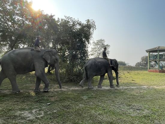 Es ist eine Safari mit Elefanten. Wenn wir Glück haben, werden wir Nashörnern begegnen. Ich hatte gelesen, dass man mit den Elefanten näher an die Tiere herankommen kann. Darum hatte ich mich trotz allen Bedenken für die Elefanten entschieden. Ich hatte aber gesehen, dass es nur zwei Touren am Morgen gibt. Die Elefanten werden also nicht den ganzen Tag mit Touristen unterwegs sein.