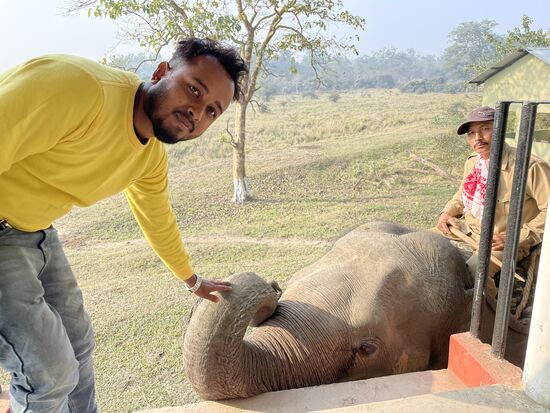 Jetzt müssen erst Recht noch ein paar Fotos gemacht werden. Rahul besteht darauf, mich auf dem Elefanten aufzunehmen. Er ist bereits abgestiegen und bedient mein Handy.