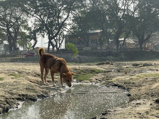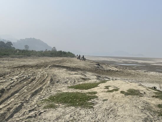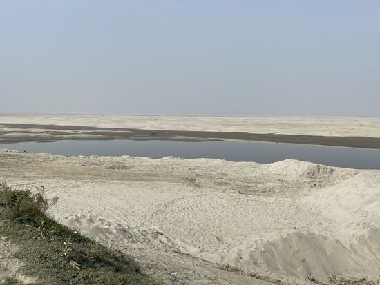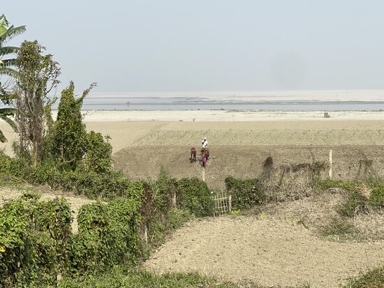 Später halten wir auch beim Fluss noch einmal an, spazieren hinunter auf die Sandbank. All das wird während der Monsumzeit überflutet sein, erzählt er und als wir weiterfahren und ich unten am Fluss grosse Pflanzungen und Gärten entdecke, meint er, dass auch diese Gegend komplett im Wasser stehen wird. Mitsamt den improvisierten Hütten. Während das Wasser sinkt, kann auf dem fruchtbaren Boden Gemüse gepflanzt werden. Sie muss gewaltig sein, die Flusslandschaft bei hohem Wasserstand. Ich kann mir das überhaupt nicht vorstellen, denn das Ufer steigt nur ganz sanft an bis zum höchsten Stand, der mit einer kleinen Böschung markiert ist.
