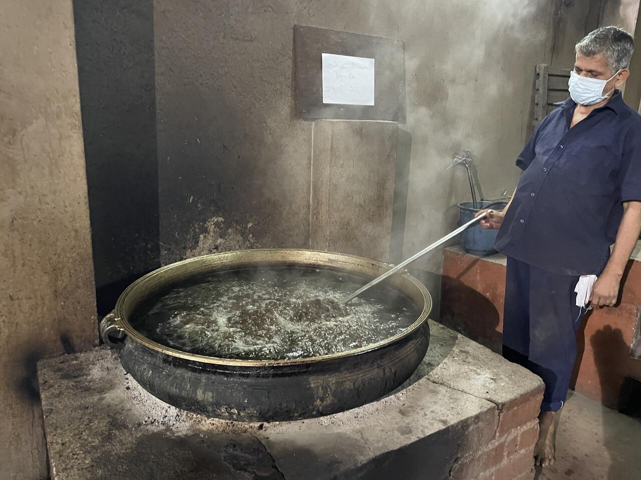 Ich benutzte die Möglichkeit, die Produktionsräume zu besichtigen. Die eingesetzten Oele und Pulver oder Puder wie sie es nennen, werden zumeist selber hergestellt in einfachen Räumen ausserhalb des Resorts. Es gibt Maschinen zum Mahlen und Pressen der Ingredienzen und grosse Töpfe um das Oel auszukochen.
