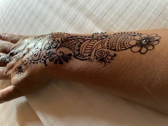 An meinem allerletzten Tag, als keine Öl-Behandlungen mehr anstanden, liess ich mir ein aufwändiges Hennatatoo machen. Es wird mich die nächsten 2-3 Wochen begleiten.