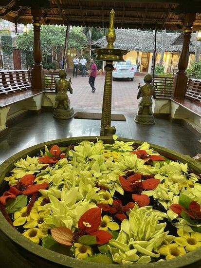 "Willst du heiraten?" fragte mich Rafeeq bei meinem Abschiedsbesuch. "Ist das ein Zeichen dafür?" fragte ich erschrocken zurück. "Nein, nein", beruhigte er mich lächelnd. "Aber indische Frauen schmücken sicht damit für spezielle Gelegenheiten". Nun ich finde, der Abschied von Somatheeram ist durchaus eine spezielle Gelegenheit.