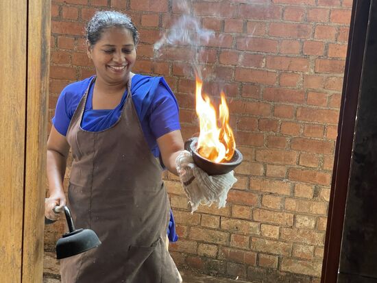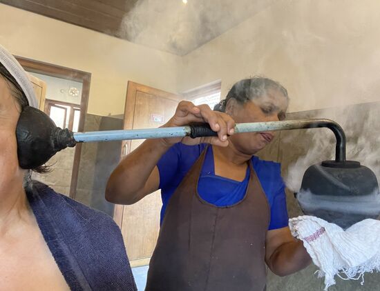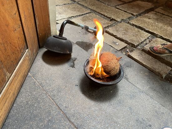 Spektakulär waren die Vorbereitungen für die Reinigung der Ohren. Thanky verbrannte Kräuter zusammen mit Kokosnussschalen und entfachte ein eindrückliches Feuer in ihrer kleinen Eisenschüssel..