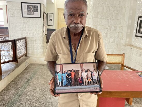 Am 2. Oktober, das ist der Geburtstag des grossen Mahatma Gandhi. Dieser Tag wird hier gefeiert. Die Delegation der Gemeinde kommt dann und es wird ein Lied gesungen. Ich verstehe nicht ganz, um welches Lied es sich handelt. Ob es die Nationalhymne oder ein Geburtstagslied von Gandhi ist, aber Jalal, so heisst der Wärter singt es mir vor. Denn er ist nicht nur Museums-Wärter, er ist auch Sänger. Dabei hält er meine beiden Hände fest und singt mit Inbrunst. Am 2. Oktober wird er es wieder an Gandhis Geburtstag singen. An der Feier zu Ehren von Indiens wichtigstem Mann.