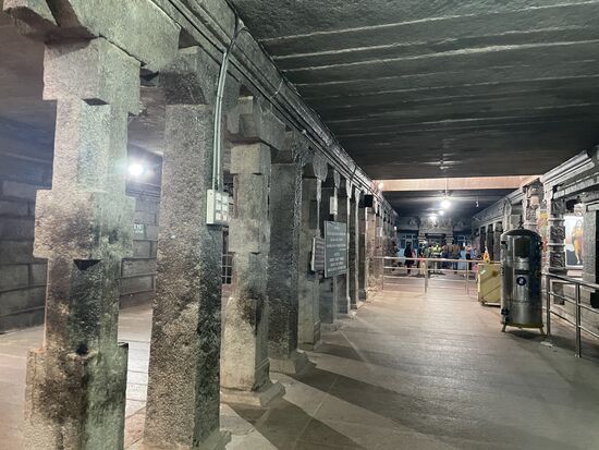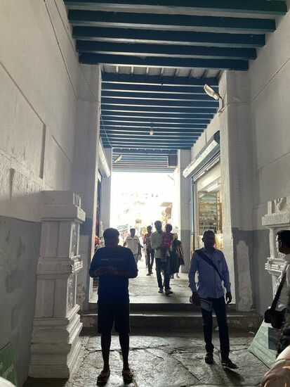 Man winkt mir freundlich zu, als ich beim Eingang ankomme, der ziemlich verdunkelt ist. Nur meine Flipflops muss ich draussen lassen wie überall. Und 20 Rupien soll ich bezahlen. Ich habe nur einen 50-er Schein, den mir jemand abnimmt, der mir beim zweiten Überlegen nicht sehr offiziell vorkommt. Wechselgeld gibt er keines, führt mich nur hinein ins Dunkel und zeigt mir den Weg wo es weiter geht. Immer den Schildern folgen. This way in.
