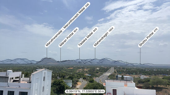 Ausserdem meint er, ich soll noch einmal hinauf auf die Dachterrasse gehen, heute würde man die drei Meere sehen, die verschiedenen Farben des Wassers. Und tatsächlich, ich kann mindestens zwei Strömungen erkennen und das dritte Blau kommt vom Pool. Hab davon nur ein Video gemacht, das ich hier nicht posten kann. Dafür nutze ich die Möglichkeit meiner PeakFinder-App und erkenne, dass der höchste Berg im Hintergrund immerhin 1654 Meter hoch ist.
