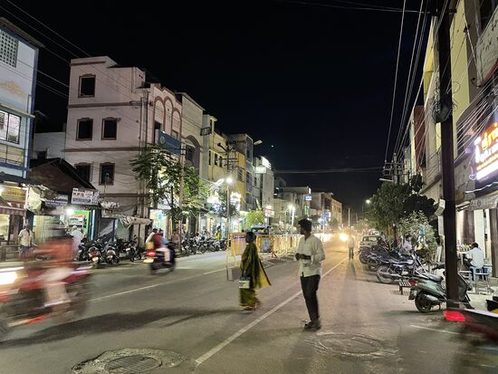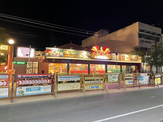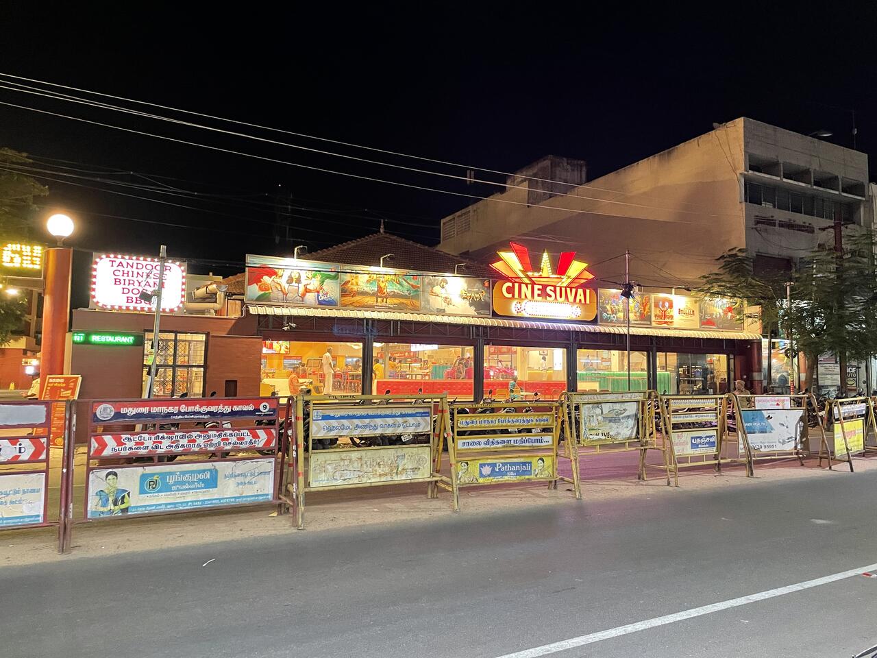 Später frage ich, ob ich morgen ein Zimmer mit Fenster haben könnte, auch wenn es gegen die Strasse bestimmt sehr laut sei und wahrscheinlich nie dunkel wird. Der junge Mann an der Rezeption verspricht, zu sehen, ob er das machen kann und ich trete hinaus auf die Strasse wo es inzwischen völlig dunkel ist. Ich suche ein Restaurant zum Nachtessen. Gemäss einer App müsste hier ein bekanntes Restaurant sein, das Cine Suvai, doch ich gehe tatsächlich zuerst in die falsche Richtung.