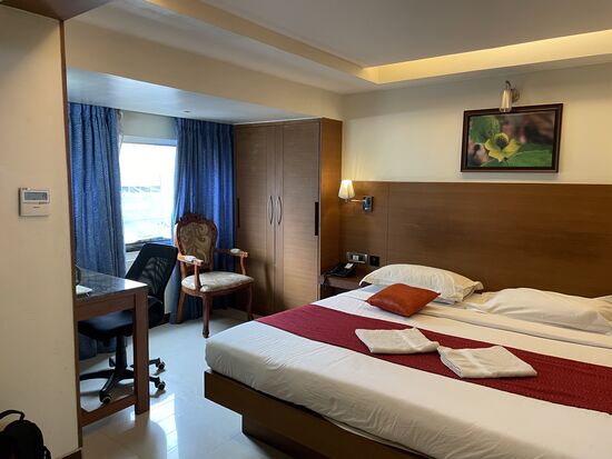 Und dann klappt es tatsächlich mit den anderen Zimmer. Ich muss noch einmal insistieren, lasse mich nicht mehr vertrösten, als ich sehe, dass das andere Zimmer fast fertig ist, sondern bringe mein Gepäck eigenhändig hin. Das stört zwar das Konzept des Mannes, der für das Zimmer zuständig ist, aber ich bin jetzt umgezogen. Durch ein Fenster, das sich allerdings nicht öffnen lässt, habe ich Aussicht auf die Strasse, wo der Verkehr hupend vorbei fährt.
