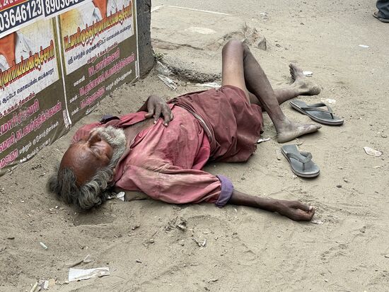 Den Mann, der mitten in all dem Chaos liegt und von niemandem beachtet wird, habe ich mit einigen Bedenken fotografiert. Sein Bild soll aber zeigen, dass auch das hier in der Stadt Realität ist. Ich begegne zwar nicht so vielen, wie ich befürchtet und von Südamerikanischen Stadten kenne, aber jeder, der ein solches Leben führen muss, ist einer zu viel.