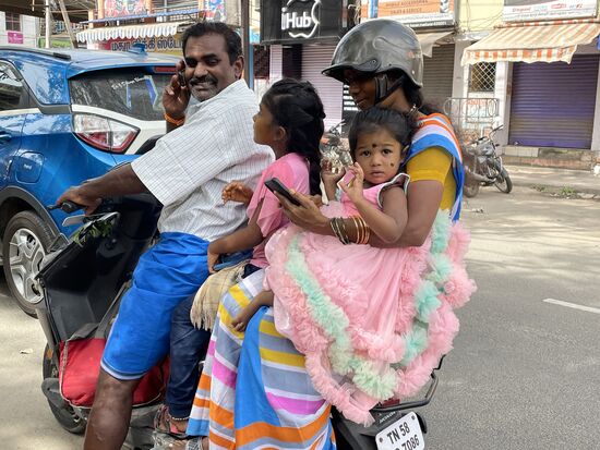 Der nächste, der mich anspricht ist ein Mann auf seinem Motorrad. Dieses ist allerdings bereits gut besetzt mit seiner Frau und seinen beiden Mädchen in rosa Festkleidern. Foto? Fragt er und zeigt auf die Kinder und dann auf mein Handy.