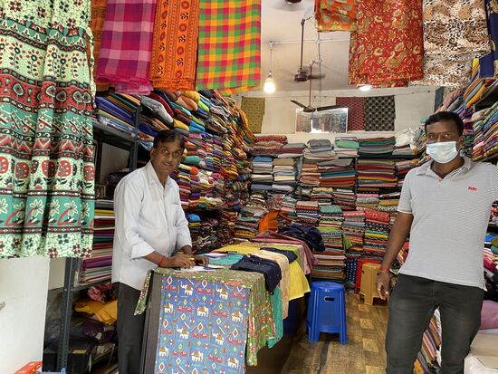 Wieder unten verwickelt mich der Schneider noch einmal in ein Gespräch und er bringt mich tatsächlich dazu, dass ich mit ihm in einen Stoffladen gehe und einen Stoff für eine neue Bluse mit Hose auslese. Morgen soll es fertig sein, morgen kann ich es abholen.