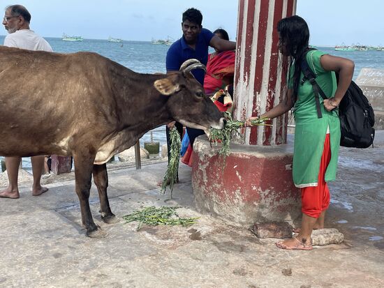Ich weiss es nicht, stelle mich an eine Ecke und lasse meine Kamera laufen. Mache ein Video, versuche diese fremde Welt irgendwie einzufangen. Doch schon während ich dastehe merke ich, dass all das gar nie auf einem Video eingefangen werden kann. Aber wenigstens ein kleines bisschen vom Rameswaram-Gefühl kann ich damit für mich und meine Leser konservieren. Die Rinder sind natürlich nicht mehr aufgetaucht. Finden kann man dieses Video mit vielen anderen auf meiner eigenen HP: www.bison.ch unter Indien-Videos, Kapitel Rameswaram.